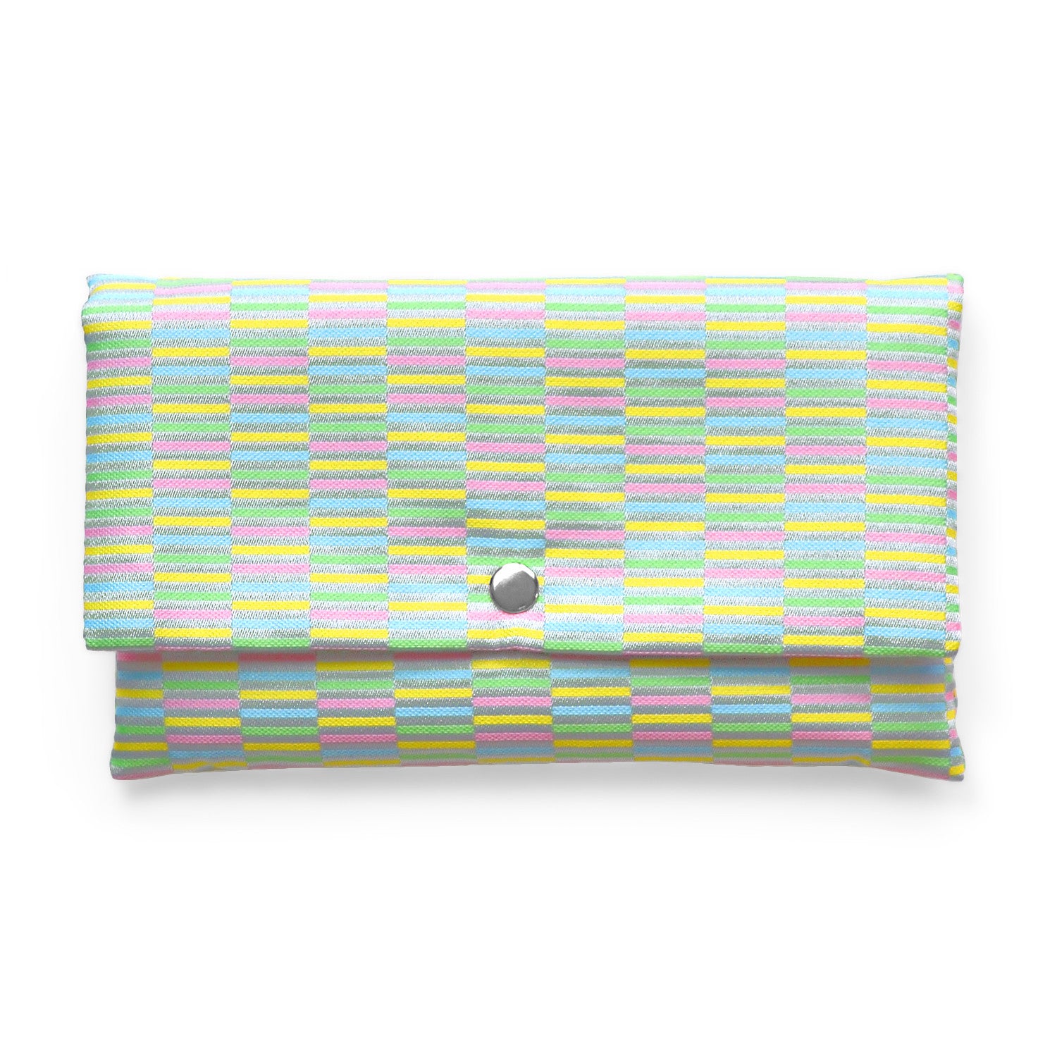 このボーダー・水色は、日本の伝統色である深川鼠ブルーグレー地にパステルのピンク・黃・水色・緑の長方形が連続したパターン。ポップながらも落ち着きを感じさせるオシャレな色柄です。