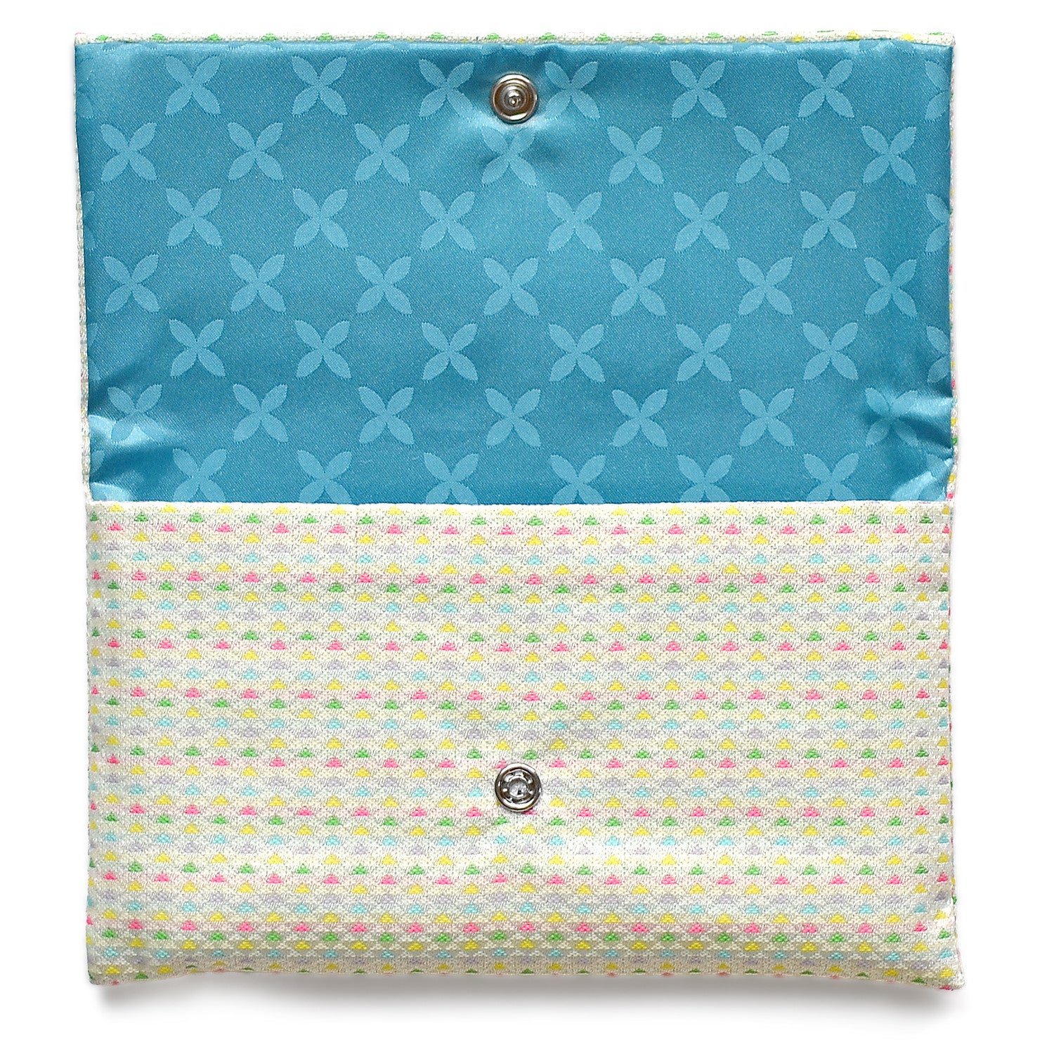 明るい見た目とは裏腹に、袈裟等に使われる技術で織られた高貴な金襴の念珠ケースです。