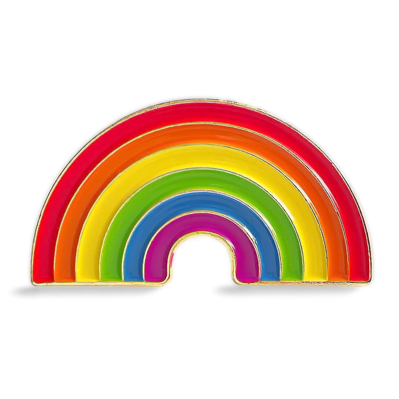 光沢のあるゴールドのベースプレートに、発色の良い6色レインボーの虹のデザインをモチーフにしたピンバッジです。